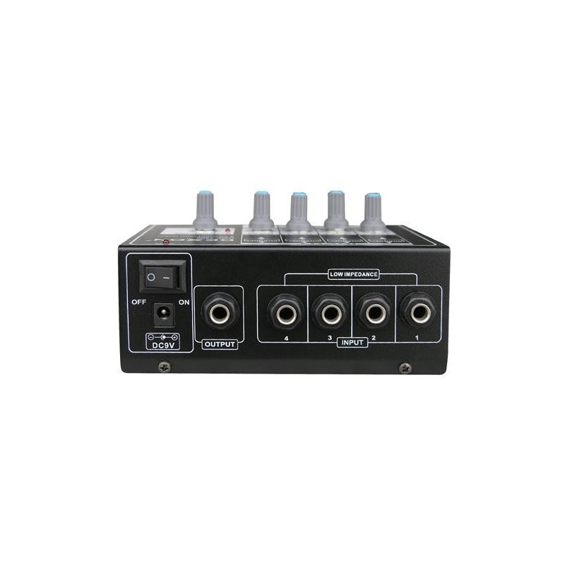 Mixážní pult DMC 1400 obsahuje 4 mono vstupy- jejíž citlivost může být nastavená od mikrofonní až po linkovou úroveň. Jedná se o praktický mini směšovací přístroj- bez korekcí a další výbavy. Využijete jej při běžném pódiovém nebo instalačním ozvučování.