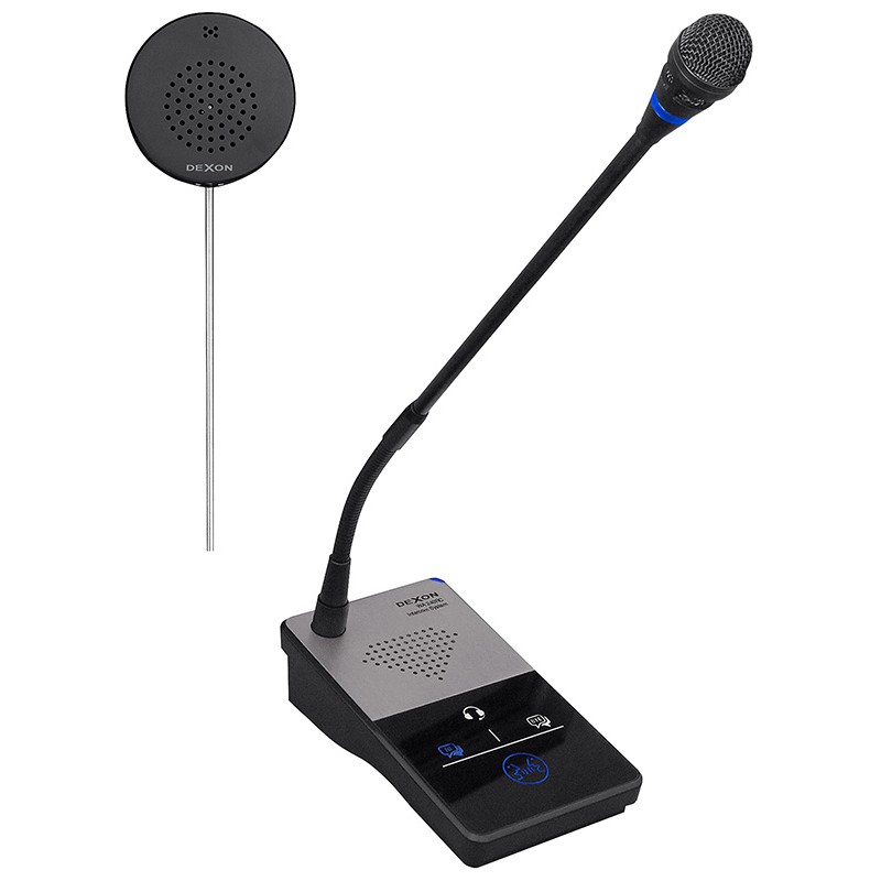 - u obsluhy se instaluje základna – stolní variabilní mikrofon s odposlechovým reproduktorem a ovládáním